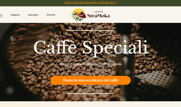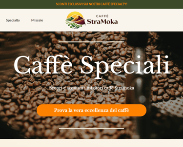 Design semplice, prodotti in evidenza e uno storytelling caldo, come una moka appena fatta.